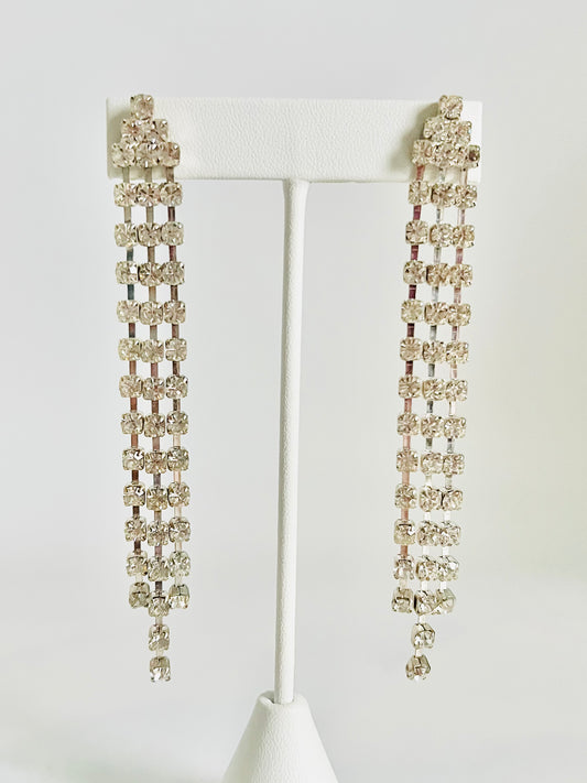 Vintage 1980s Pierced Rhinestone Shoulder Duster Earrings