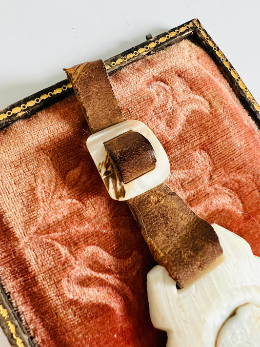 Vintage Hand Carved Shell Cameo Leather Fob