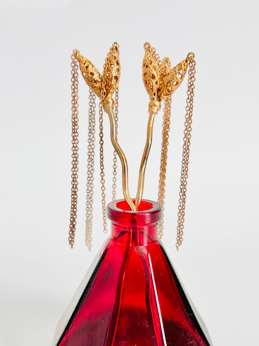 Deadstock Vintage Filigree Hair Sticks with Chain Tassels