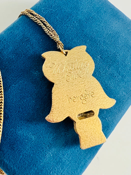 Vintage Bergere Whistling Owl Gold Pendant Necklace