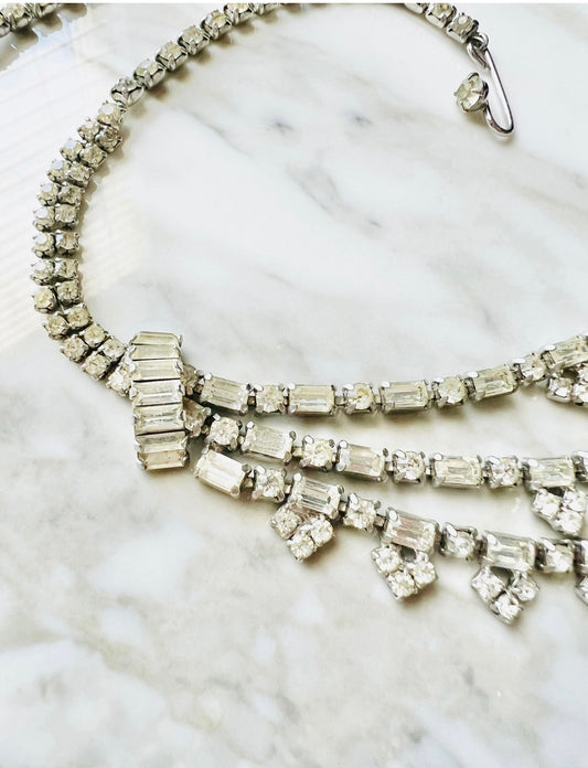 Vintage Kramer of New York White Rhinestone Statement Necklace