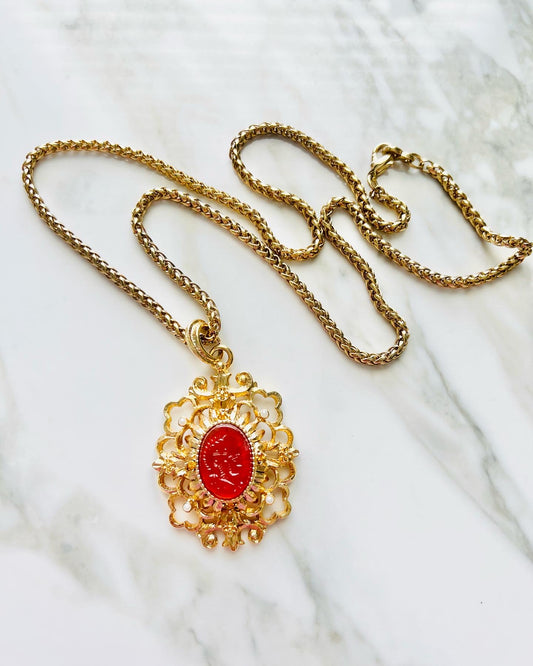 Vintage Signed Designer Kenneth Lane Faux Carnelian Pendant Necklace