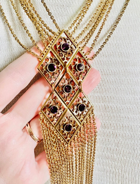 Vintage Joan Rivers 1990s Purple Glass Statement Necklace