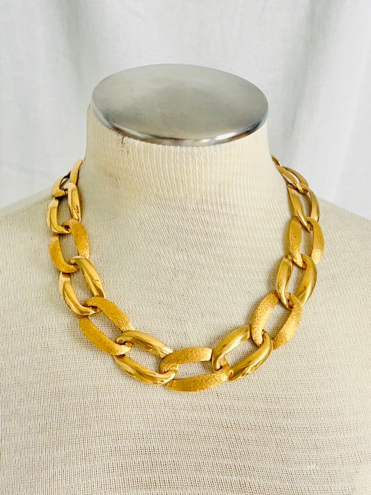Vintage Napier Large Oval Shiny and Brushed Gold Chain Link Necklace