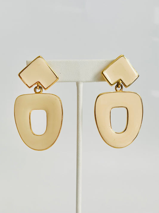 Vintage 1990s Large Cream Enamel Geometric Pierced Earrings