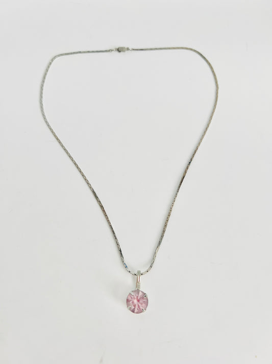 Deadstock Faceted Lilac Glass Pendant in Silver Chain
