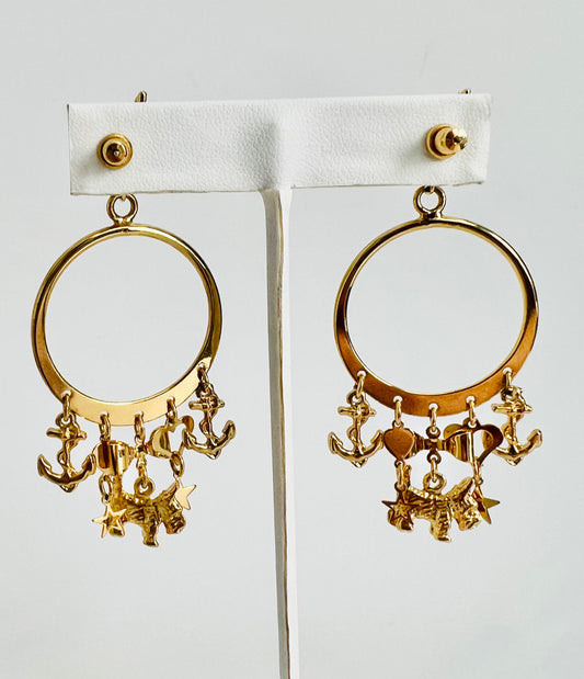Gold Charm Scottie Dog Nautical Pierced Earrings