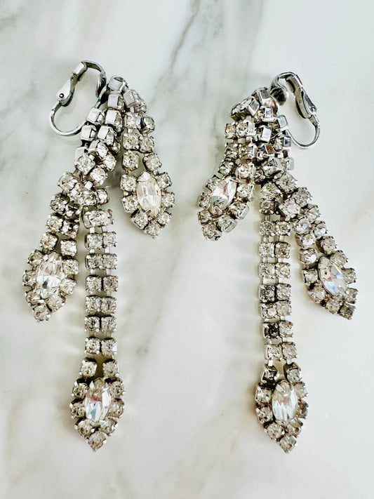 Vintage Massive Sparkling Rhinestone Clip Earrings