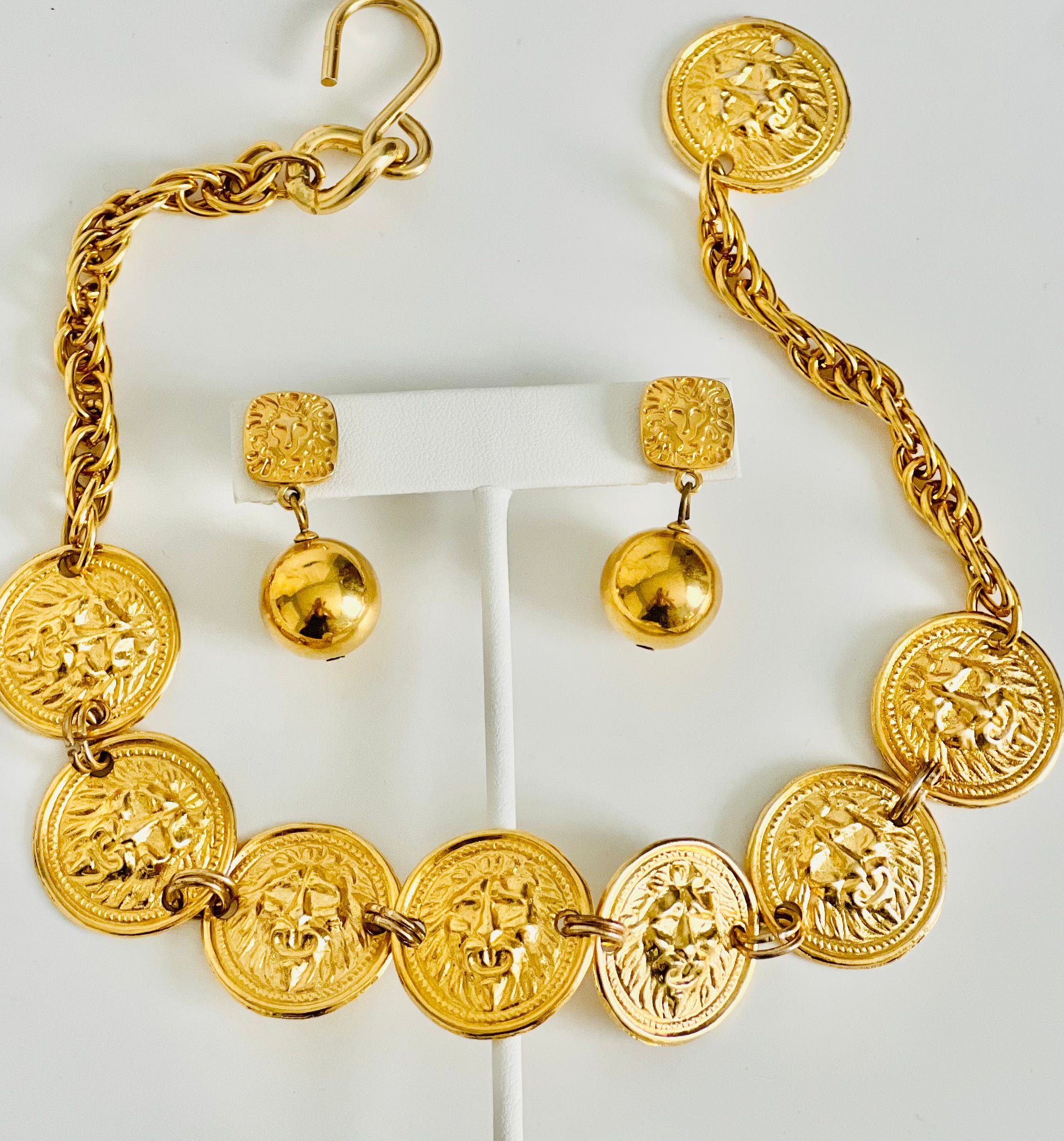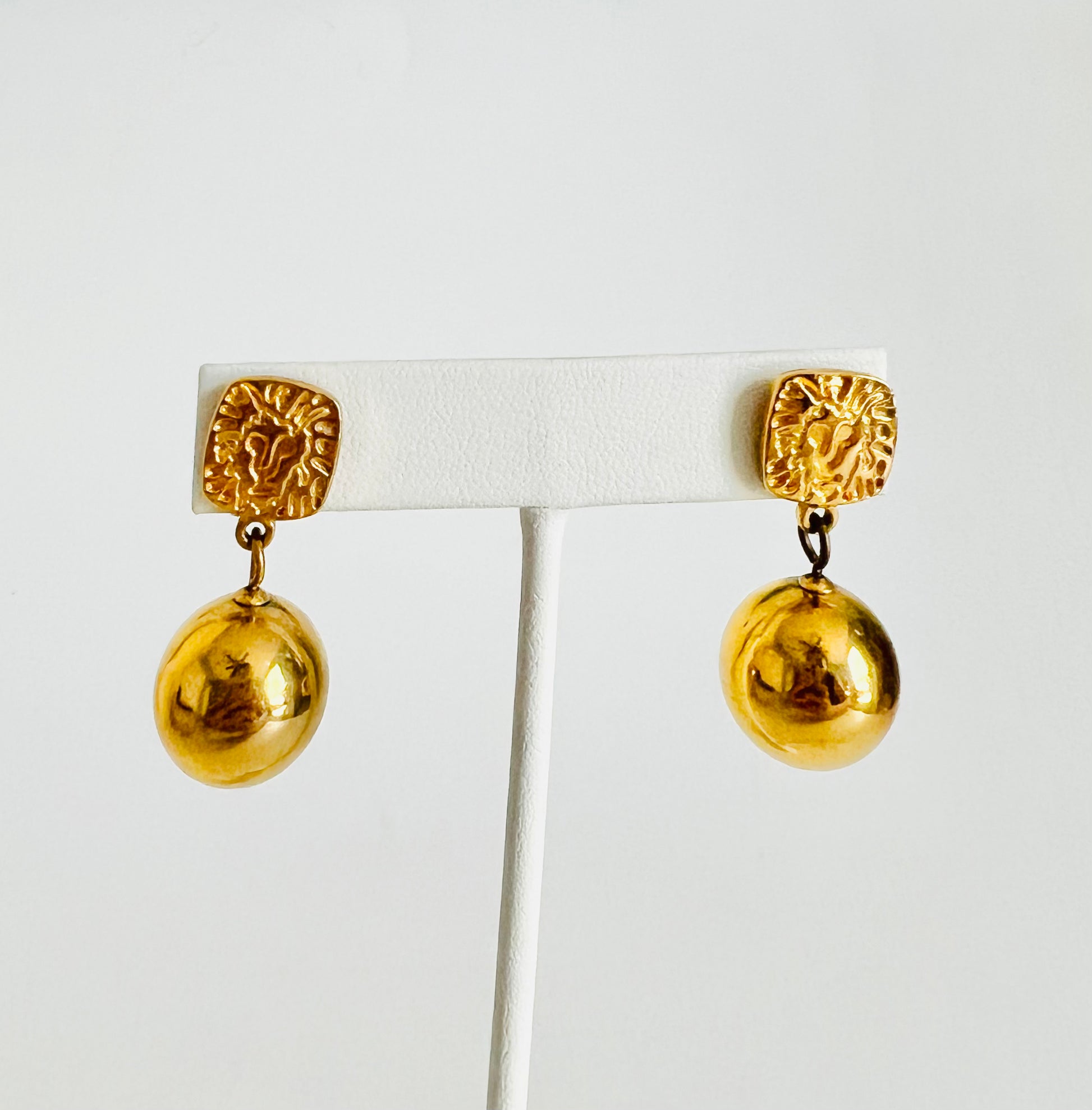 Vintage 1980s Anne Klein Style Gold Lion Earrings